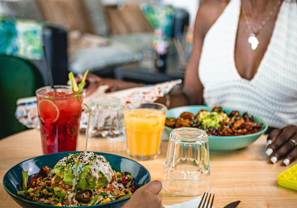 The party jollof is the signature dish and a genuine standout. Cooked in a tomato sofrito with star anise and a hint of lemongrass, it is served alongside peppered chicken and arrives with the slightly smoky, deeply layered flavour that defines the best versions of this dish. The sticky suya wings are spiced with the traditional West African suya blend, grilled to a slight char, and served with a pili pili dipping sauce. The buka beef stew uses slow-braised beef shank in a tomato and palm butter reduction served with coconut rice and fried plantains. For those who prefer plant-forward eating, the miso mafe, a peanut and coconut milk dish with jackfruit and aubergine, is a standout vegan option that sacrifices nothing in terms of richness or flavour.