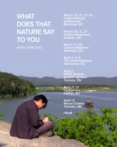 WHAT DOES THAT NATURE SAY TO YOU screens in Toronto at the Bell Lightbox on April 2nd. Other dates and cities listed below....