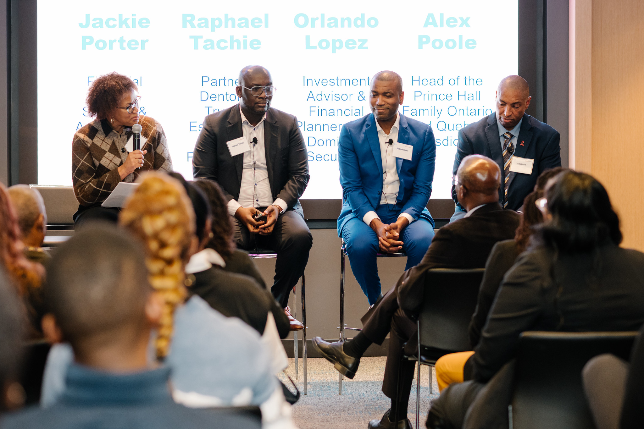 A community-centred health event also became a conversation about legacy and financial empowerment. A panel featuring Raphael Tachie (Dentons Partner, Trusts, Estates and Wealth Preservation Group), Orlando Lopez (Investment Advisor and Financial Planner, RBC Dominion Securities), and Alex Poole (Head of the Prince Hall Family, Ontario and Quebec Jurisdiction) invited guests to consider what planning means for their families.